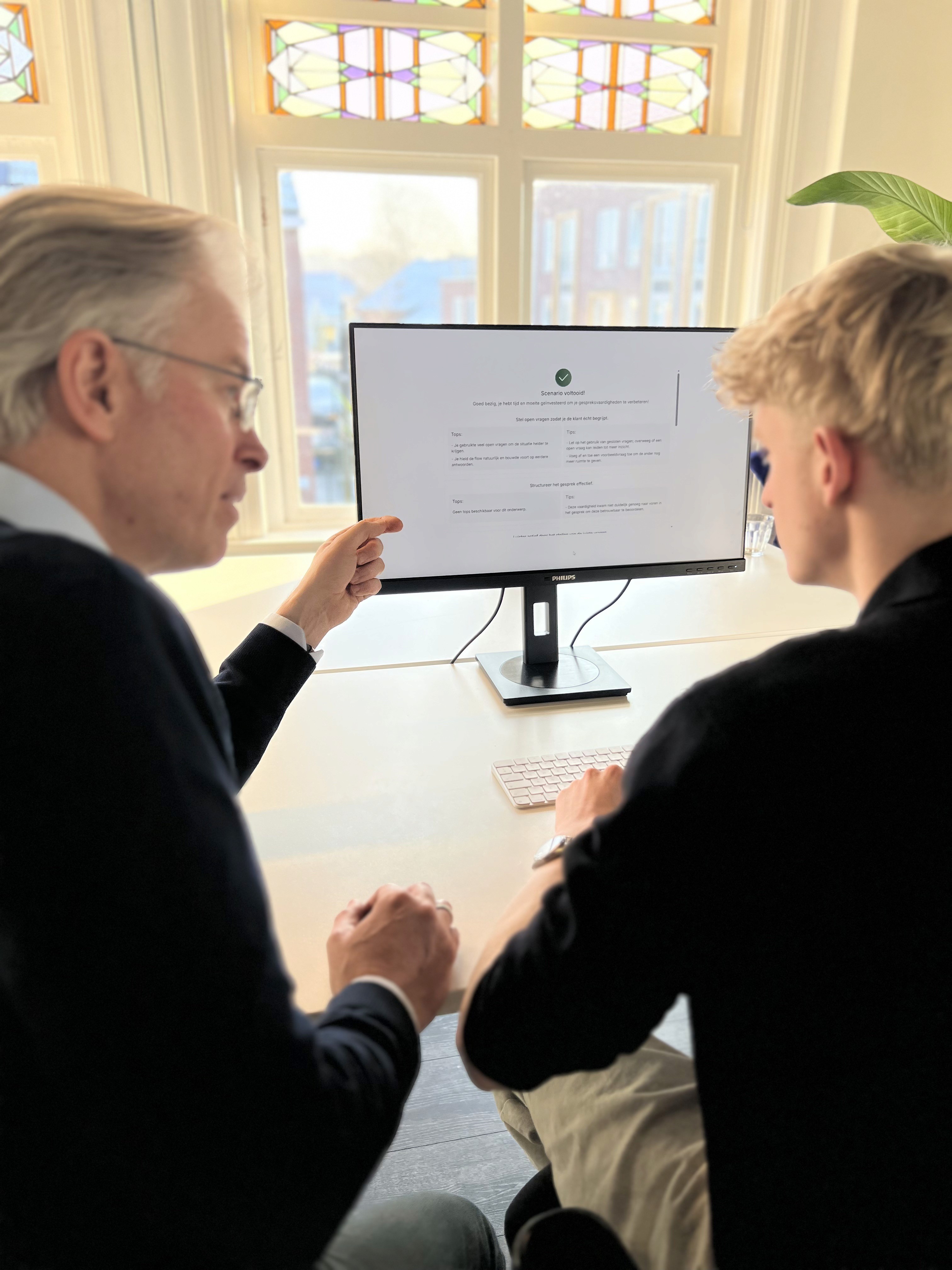 Het online leerplatform staat tot je beschikking. Het is ingericht om jouw gespreks- en luistervaardigheden te oefenen. Casuïstiek uit jouw eigen praktijk. Na ieder gesprek directe terugkoppeling: Wat gaat goed? Wat kan beter? En hoe?